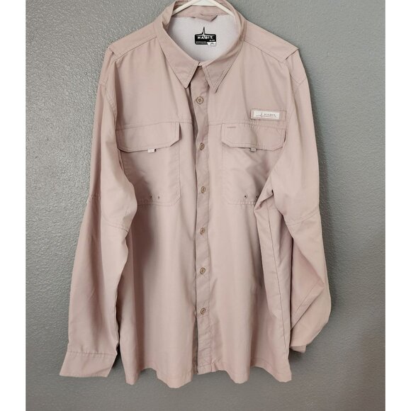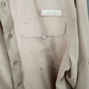 HABIT Mens XL Long Sleeve Fishing Shirt Tan UPF 40+ Protection Roll Tab Sleeve