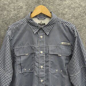 HABIT Solar Factor Men's Fishing Shirt, Long Sleeve Vented, 2 Pockets, Blue White Checker, Size L
