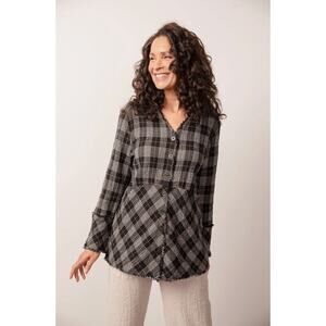 HABITAT | Black and White Plaid Gauze Button down Chunky Sleeve Top Extra Small