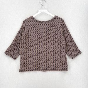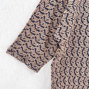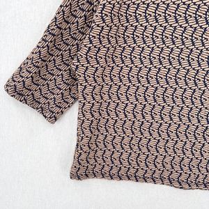 HABITAT Texture 3/4 Sleeve Stretch Knit Top Womens XS Blue Tan Pattern Printed