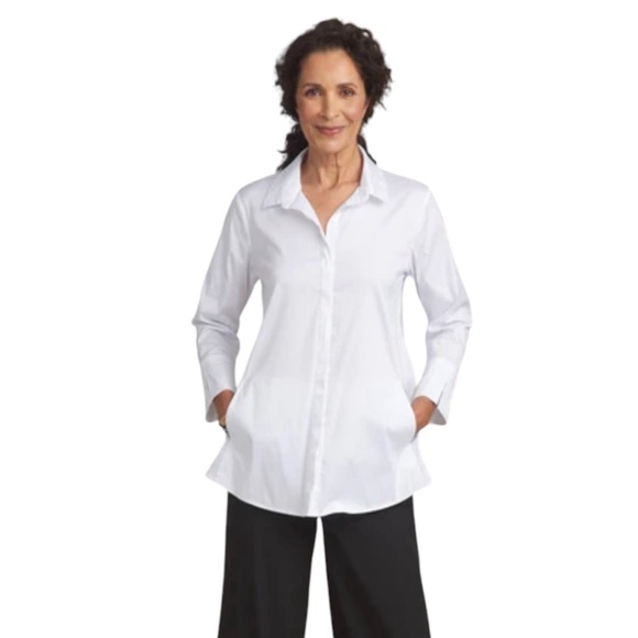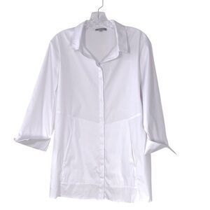 HABITAT The One White Button Down Tunic Shirt Top With Pockets Women's Size L