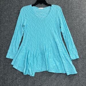 HABITAT Women's Small Long Sleeve Textured Asymmetric Hem Scoop Neck Blue Tunic