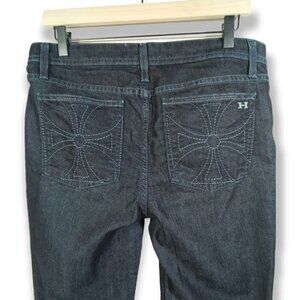 HABITUAL Denim Eventide Dark Wash Flared Embroidered Jeans Stretch Size 31