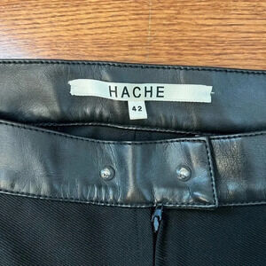 HACHE Women’s Black Stretchy Leather Trim Pants Sz 42 US S Made in Italy 🇮🇹