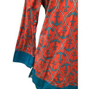HADLEY 100% cotton rope and anchor print tunic or swimsuit coverup. Size 6. In excellent condition. 3/4 eight sleeves. Side slits. Very summery.