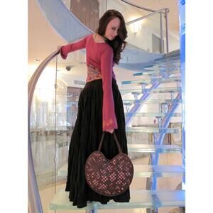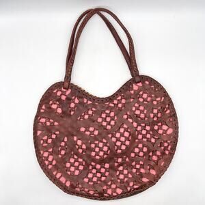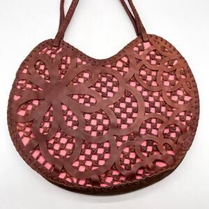 HADLEY POLLET Pink Peek A Boo Shoulder Bag Brown Laser Cut Leather Flower