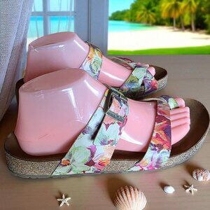 HAFLINGER ( 9 ) JUNO BEIGE FLOWER Multi Strap Leather with Cork