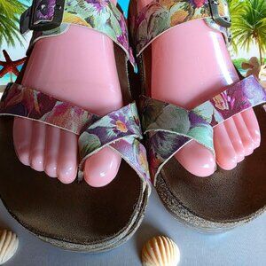 Insole is leather and shows no signs of wear. Upper floral leather is in Perfect Condition.