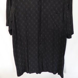 Pre-owned, Haggar Clothing Brand, Black short sleeved button down, shirt with subtle cream colored dot weaved pattern. Has front pocket. Side slits at hem. (See photos for details.)