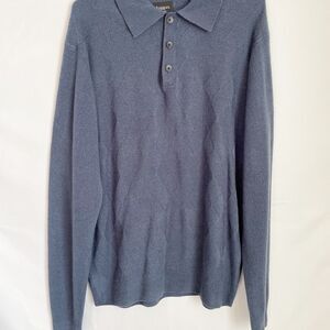 HAGGAR Clothing Men's Blue Long Sleeve Polo Pullover Casual Sweater Shirt Size L. Excellent preowned condition, no rips stains or tears. Measurements laying down