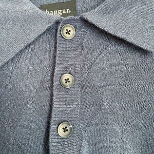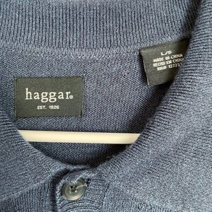 HAGGAR Clothing Men's Blue Long Sleeve Polo Pullover Casual Sweater Shirt Size L. Excellent preowned condition, no rips stains or tears. Measurements laying down