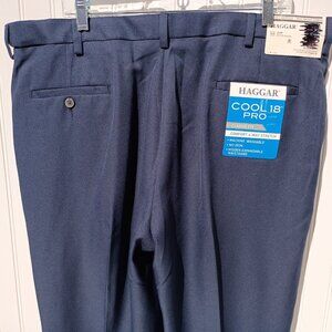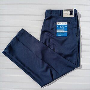 HAGGAR Dress Pants Mens 40 x 29 / 30 Navy Blue Flat Front Cool 18 Pro Slacks NWT