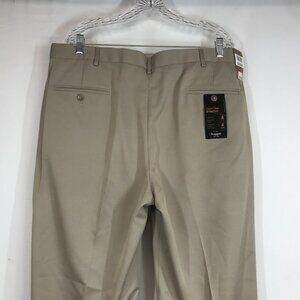 HAGGAR - MEN'S 40X32 - STONE TWO TONE HERRINGBONE PLEATED CUFFED DRESS PANTS