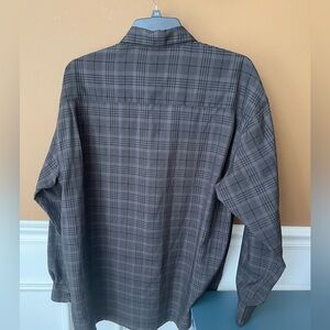 HAGGAR Men's Gray Plaid Collared Button Down Shirt Size XLT Business Casual Work