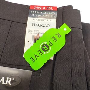 HAGGAR Men's Performance Comfort Dress Pant Straight Fit Black 34W x 30L NWT