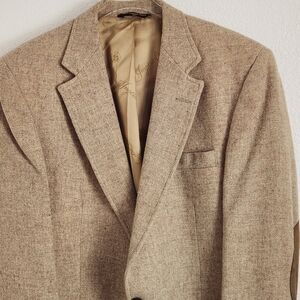 HAGGAR Vintage Tan Wool Sport Coat with Elbow Patches Size 40