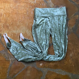 HAH Green Crushed Velvet Track Stirrup Pants Small