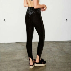 \ Crushed velvet stirrup style pants featuring solid trim down the sides.