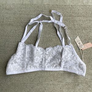 HAH by Free People Don't Cross Me Demi Bra Sz Small Blanc Floral Lace Halter NEW