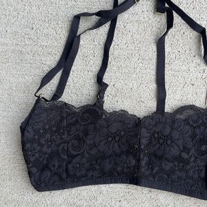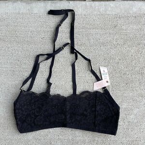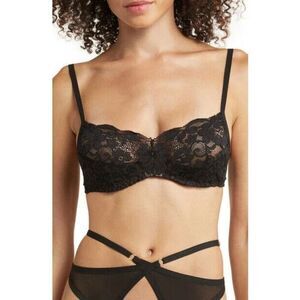HAH by Free People Hook Up Demi Bra Size Medium Black Underwire Floral Lace NEW