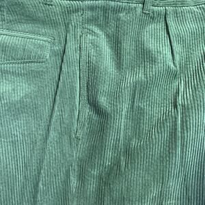 HAIDER ACKERMANN casual pants in a green cotton blend corduroy featuring a pleated style, straight leg with back cuffed design, and button fly closure with belt detail.