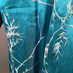 HAIDER ACKERMANN Size M Teal White Jacquard Linen Silk Layered Long Sleeve Shirt
