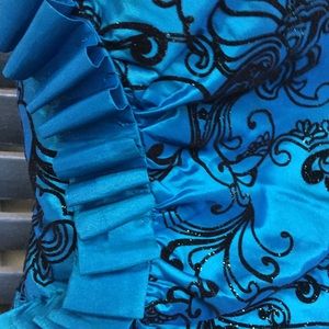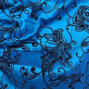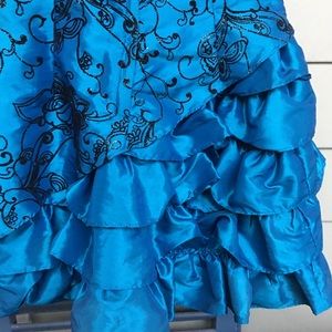 This is a beautiful dress. It is formal, it is fancy...the paisley is embellished in black with slight sparkles. It has a wonderful party flare. Beautifully made as you can see by the photos. Size 5/6. $59 at purchase. 29 inches long from the top breast area to the bottom hem 24 inches long from the back zipper to the bottom hem. Dress by Hailey Logan by Adrianna Papell