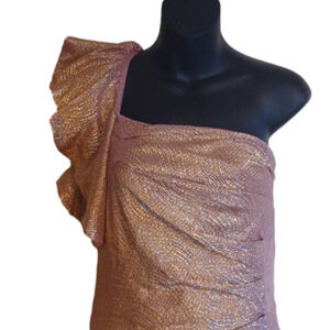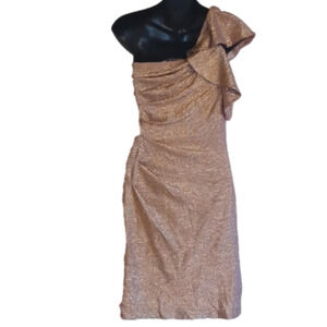 HAILEY Logan ( Adrianna papell) Metallic gold one shoulder dress.Size medium.