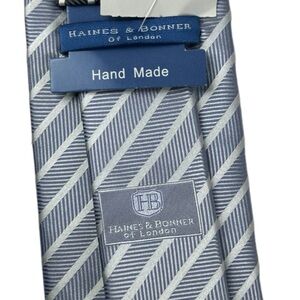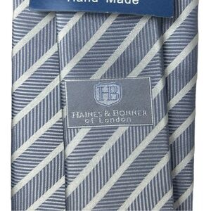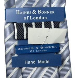 HAINES & BONNER Of London Handmade Silk Tie Blue and White Stripes. New