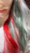 Brand new in box, nice, soft, pretty, real-looking hair…see pics for more description. Silver/gray at crown with medium Red and Dark Green mixed in….see video please. Perfect for fun cocktail parties! I ship every day.