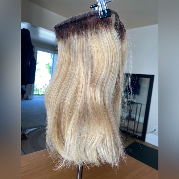 HAIRDO Human Hair Ponytail CLIP VELCRO WRAP EXTENSION KEN PAVES BLOND DARK ROOTS