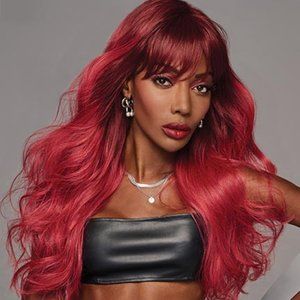 New in box with tags. That's My Jam is lusciously long and wavy with soft fringe that can be styled forward or to the side. Average size cap. With HEAT-FRIENDLY Tru2life synthetic fiber allowing you to take the texture from soft waves to curly or straight. Wide velvet covered band along front. Extended open nape. Open ear tabs. Ultra-thin hook & look straps for adjusting the circumference. Stretchy resilient material throughout the open wefted sides & back. True comfort! That's My Jam fantasy shade is described as a delicious bright berry red with darker softly shaded roots. MSRP $164.00 USD