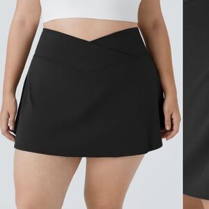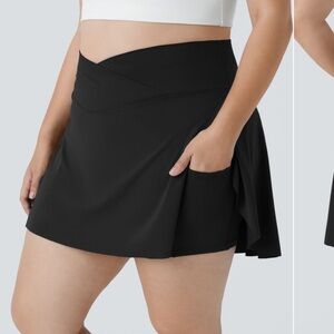 Stylish black tennis skirt. Features a flattering fit. Perfect for any occasion. Everyday SoftlyZero Airy Crossover Pocket 2-in-1 cool touch Tennis Plus Size Skirt-Lucid- UPF50+, 2X (20W-22W)