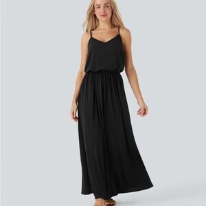HALARA Black Maxi Sundress with Pockets- Adjustable straps