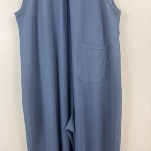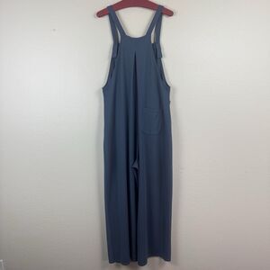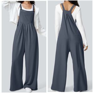 Stylish blue jumpsuit by HALARA. Features wide legs and adjustable straps. Perfect for casual wear.