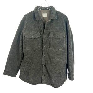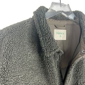 HALARA Collared Snap Down Chest Pocket Sherpa Jacket Olive Green Size XL