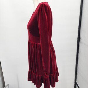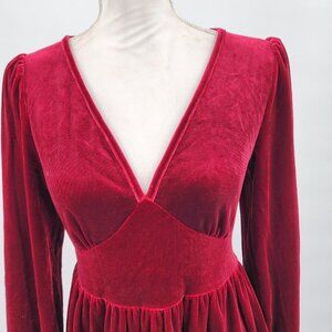 HALARA Deep V Neck Ruffled Hem Velvet Cranberry Red Mini Party Dress XS NWT