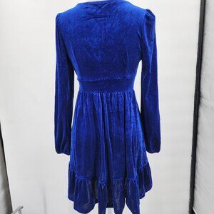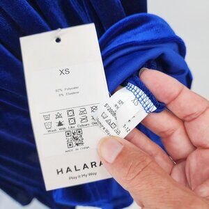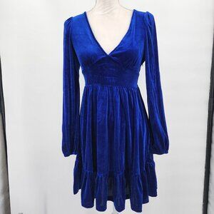 HALARA Deep V Neck Ruffled Hem Velvet Royal Blue Mini Party Dress XS NWT
