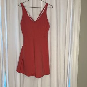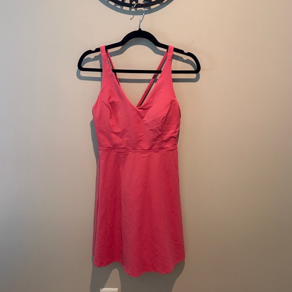 Stylish watermelon color dress with a V-neckline. Ideal for any occasion. (cover photo best representes true color
