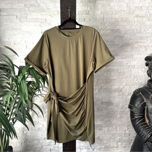 HALARA Everyday Capulet Olive Green Tie Knot Ruched Mini Chill Dress 2X New