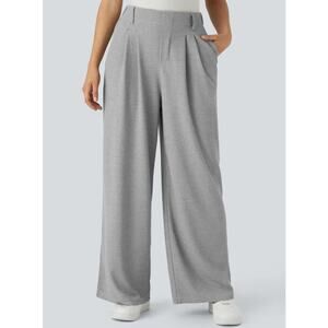 HALARA Flex Small Petite High Waist Pocket Wide Leg Gray Waffle Office Pants, S