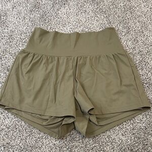 Chic high waist shorts in olive. Perfect for casual wear. Comfortable and stylish.