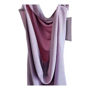 HALARA Women's Size M Dress - Glitter Apricot Pink, Spaghetti Straps, Bodycon, Mini, Low Draped Back, Draped Neck, Silver Glitter, Stretch, 74% Nylon, 21% Polyester, 5% Elastane