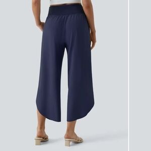 Stylish navy capris with a wide-leg design. Comfortable and versatile for any occasion.