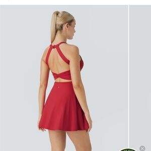 Chic leisure wear mini dress with a twist back design. Halter neckline. Perfect for any occasion. Dress up or down! Tags are removed but it was never worn so basically new!
