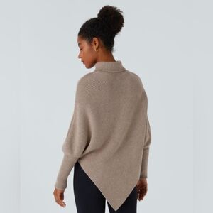 Chic taupe poncho sweater. Soft knit with a stylish drape. Ideal for layering.