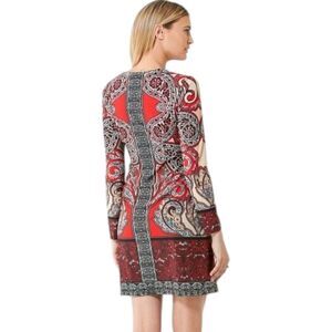 HALE BOB Paisley Jersey Shift Dress Size Medium Bohemian Long Sleeve V Neck Red