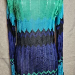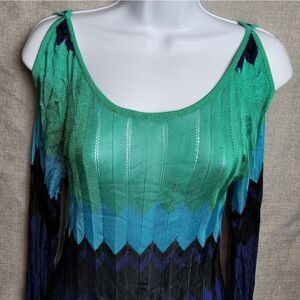 Super cute knit cold shoulder, sheer dress from Hale Bob Cabana. Could be used as a casual dress or a swimsuit coverup. Size small.