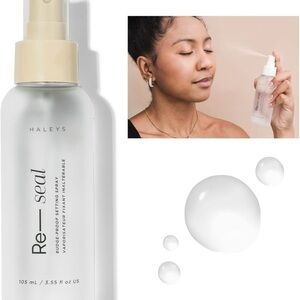 Haleys Beauty Re-Seal Setting Spray offers a 16-hour hold with skin-nourishing benefits. Its weightless formula ensures makeup longevity without smudging or fading.