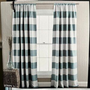 HALF MOON Blue & White Room Darkening Insulated Curtain Panels (BRAND-NEW!)